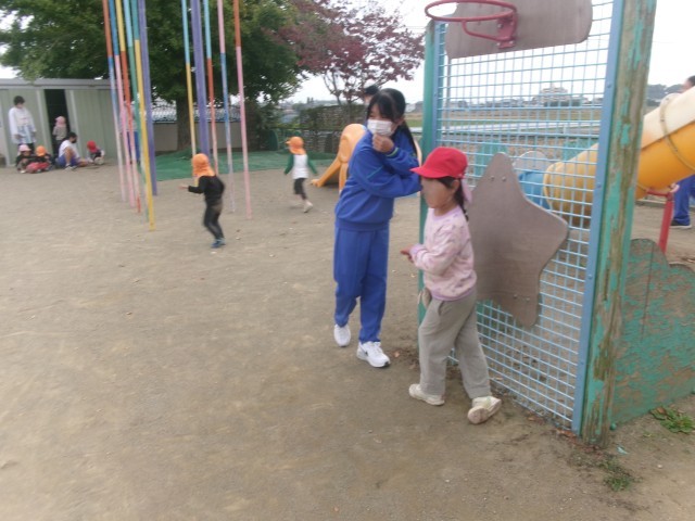 「おねぇちゃんといっしょだから、あんしん‥」 杉の子保育園で園児と交流しました。