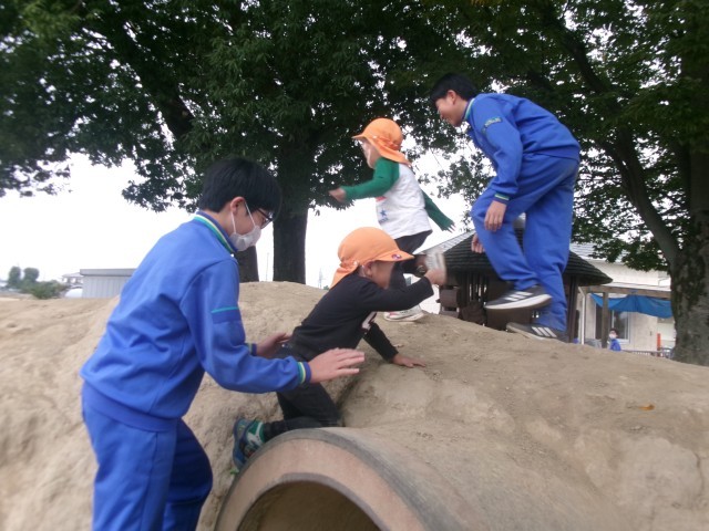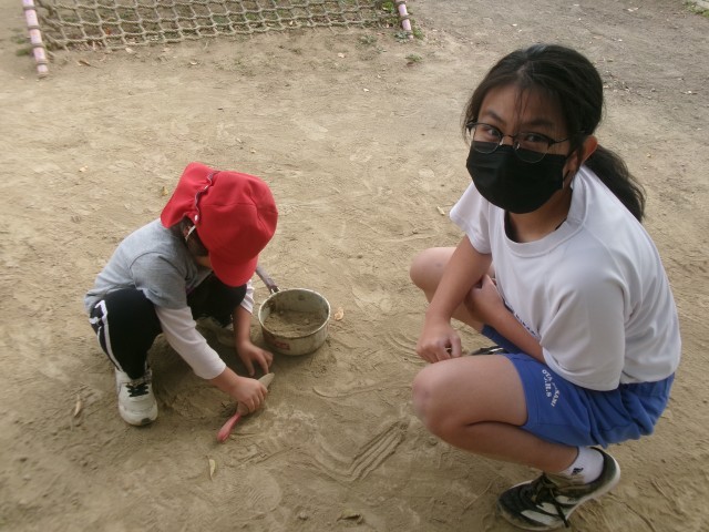 たのしいね! おにぃちゃん、おねぇちゃんといっしょだから‥。 園の中を紹介していただきました。