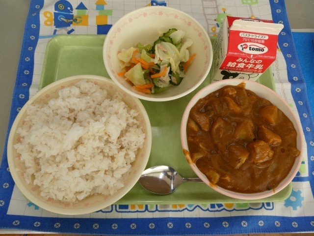 11月21日 さつまいもときのこのカレー 公開日 2025/11/21 更新日 2025/11/21 学校のようす 本日の献立は、「麦ご飯、牛乳、さつまいもときのこのカレー、ツナサラダ」 少し辛口でさつまいも、きのこ、鶏肉など、具だくさんでおいしさ満点のカレー。麦ご飯とよく合います。ツナサラダは、キャベツやきゅうりなどの食感がよく、さっぱりとして、とてもおいしいです。