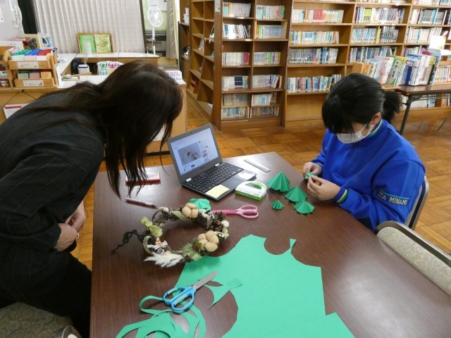 11月からクリスマスリースなど、季節に合ったグッズを本校生徒が手作りをして、図書室の廊下や職員玄関などに飾り付けをしています。完成した数々の素晴らしい作品をぜひ、ご覧ください。