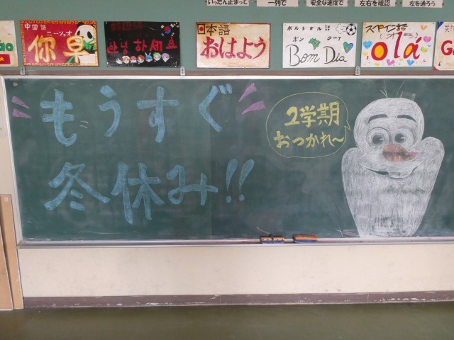 生徒玄関内のメッセージボードです。皆さんは、どんな冬休みにしたいと考えていますか。
