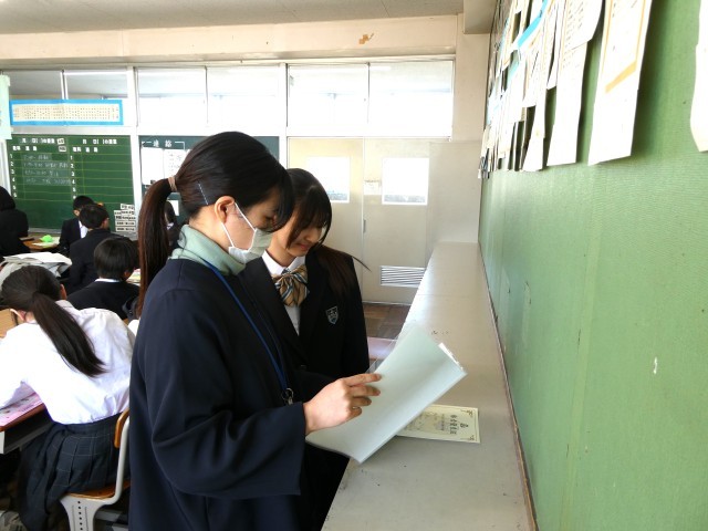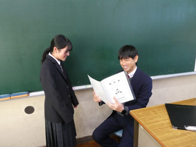 各学級担任から生徒へ通知表を渡している様子を写真で紹介いたします。