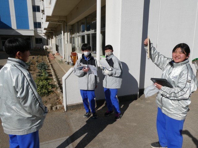 「どう?測れた?」 「うん、6℃だよ」 笑顔で楽しそうに観測しています。