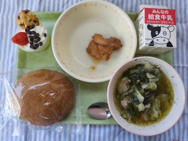 さりげなく食物繊維の摂取も期待できる給食らしいデザートを食べた3年生の皆さん、明日は立派な卒業式となるように願っています。