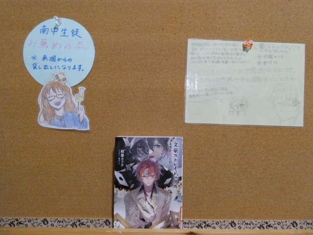 3月17日 そうだ、図書室へ行こう 公開日 2026/03/17 更新日 2026/03/17 学校のようす 今週の南中生徒 お薦めの本は「文豪ストレイドックス」です。表紙を見ただけでミステリーな感じがします。ぜひ、手に取って読んでみてください。