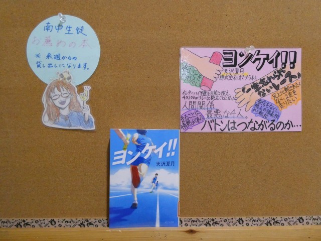 そうだ、図書室へ行こう(最終回) 公開日 2026/03/25 更新日 2026/03/25 学校のようす 今年度、最終回の南中生徒 お薦めの本は、「ヨンケイ」です。果たして、バトンはつながるのか‥。ぜひ、手に取って読んでみてください。