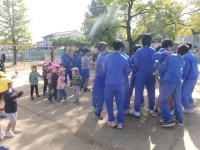 本日の献立は、「丸パン横切り、牛乳、ハンバーグトマトソースがけ、さつまいもとしめ...