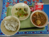 本日のリクエスト献立は、「ご飯、牛乳、さばのみそ煮、春雨サラダ、豚汁」 さっぱり...