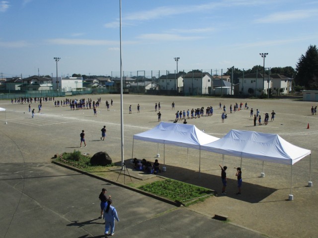 今日は日陰に入ると涼しいものの、校庭には強い日差しが降り注いでいました。それでも元気で楽しそうな生徒たちの声が響いていました。