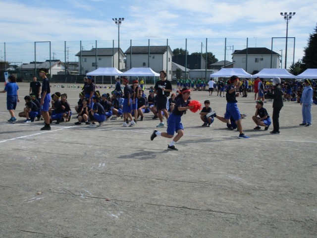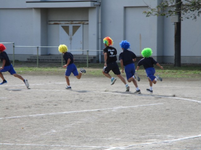 1年の学年種目は、「アフロ DE 全員リレー!」でした。