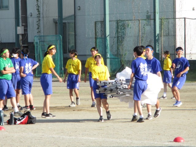 3年生は義務教育最後の体育祭となりました。体育祭終了後は卒業アルバム用の写真撮影、さらにその後の後片付けも、協力をしながらしっかりと行ってくれていました。