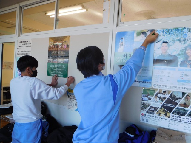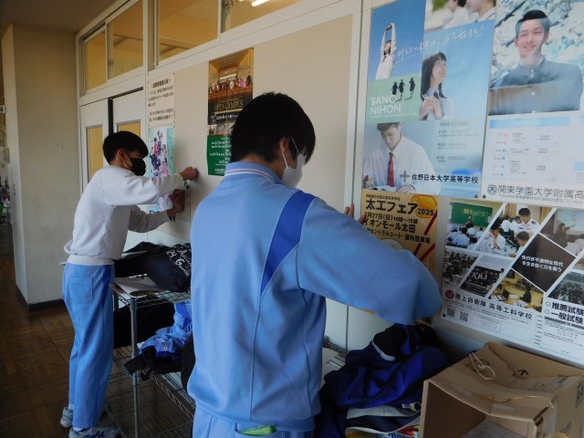 気持ちを切り替えるために、廊下掲示物の張り替え作業を行っていました。
