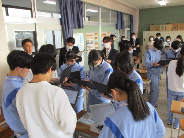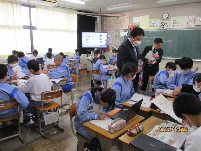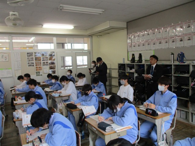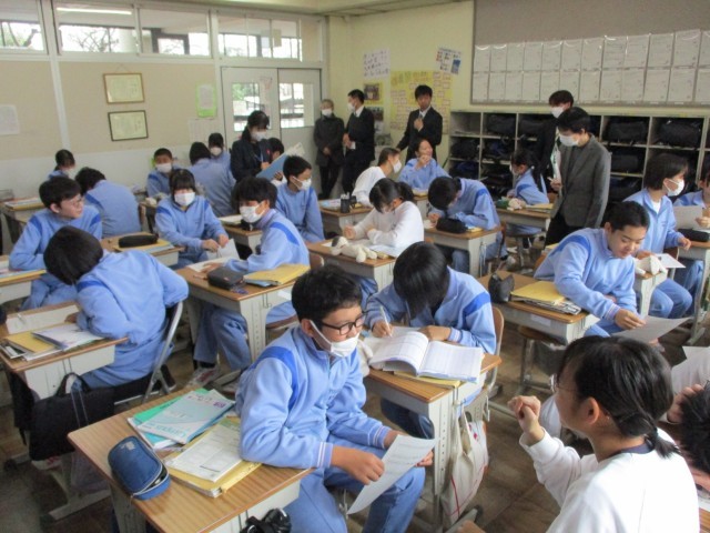 本校の生徒の様子について指導主事からは、「子ども達がとても落ち着いていますね」「優しくて思いやりのある生徒たちばかりですね」「学習に対して、意欲的に取り組んでいますね」など、たくさんのお褒めの言葉をいただきました。