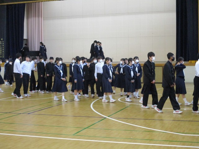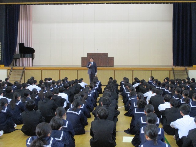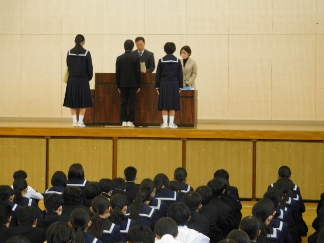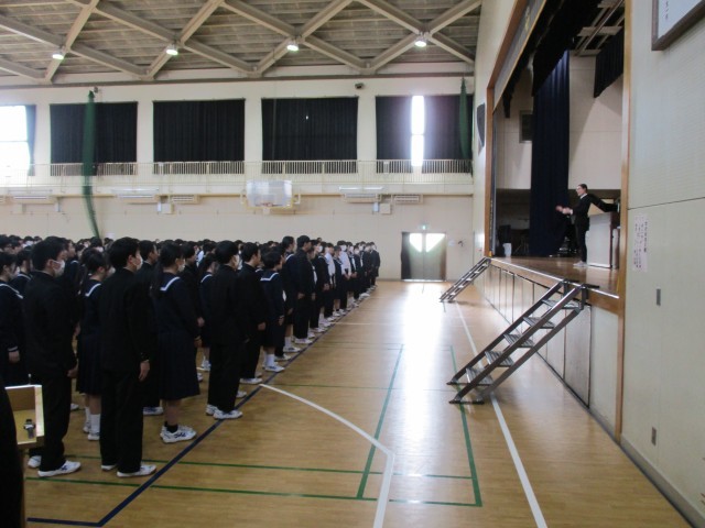 終業式では学校長式辞の他、部活動担当、安全担当、生徒指導担当から冬休みに向けての話がありましたが、どの生徒も最後まで真剣に話を聞いているなど、今年1年をとてもよい形で締めくくることができていました。