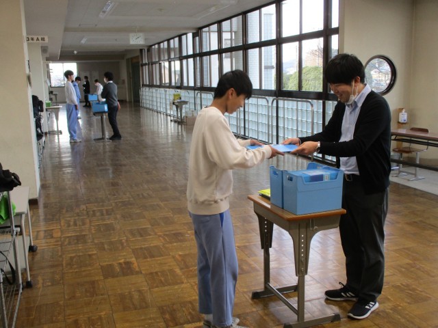 2学期の最終日となった本日は、4校時に終業式、5校時に学級活動を行い生徒たちに通知表が手渡されました。