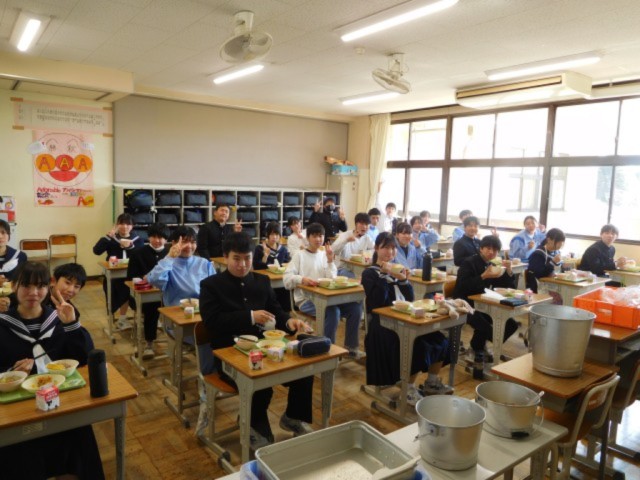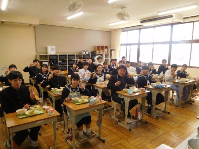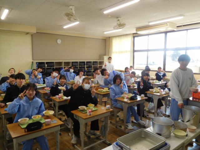 3年生の各クラスの生徒たちは、最後の給食を味わいながら楽しい時間を過ごしていました。