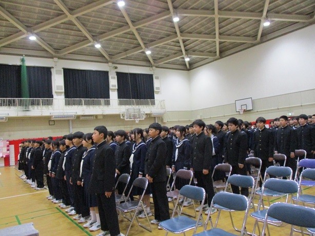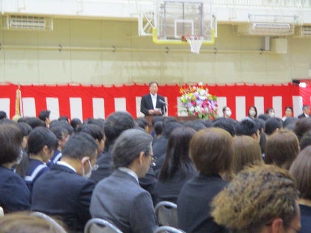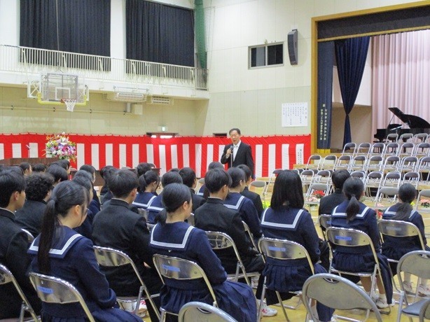 続く始業式では、校長から「この1年間心がけてほしいこと」について話をしました。生徒たちは新学年の目標を胸に、真剣な表情でしっかりと耳を傾けていました。