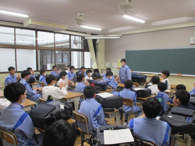 部活動集会の様子 公開日 2026/04/23 更新日 2026/04/23 学校のようす 約2週間の体験期間を経て、本日、1年生が正式に部活動へ入部しました。部活動集会では、顧問から活動方針や約束事の説明がありましたが、1年生はまずは焦らず、少しずつ環境に慣れていってほしいと思います。また、5月下旬からは3年生にとって集大成となる市総体が控えています。1・2年生は先輩を全力でサポートし、全員が主体的に最高の部活動を作り上げていくことを期待しています。 +5