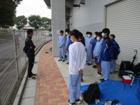美術部の2年生が、3階通路の掲示板で貼り絵を作成していました。