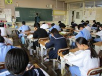 2年生の英語で「Conversation Test」をしていました。ALTと一対...