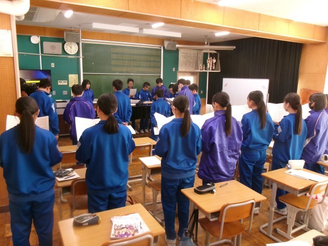 2年生の音楽では、卒業式に歌う合唱の練習です。音取りが終わり、合唱が楽しみです。