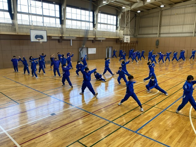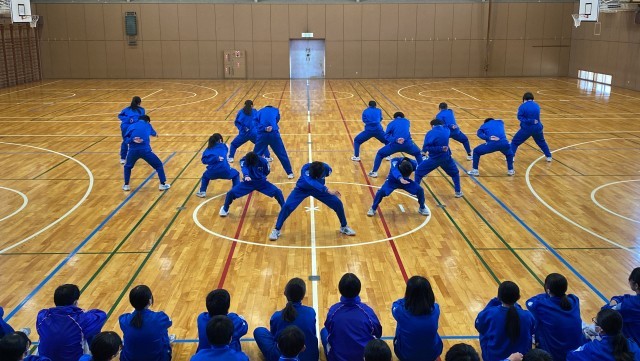2年生の体育では、ソーラン節を工夫して踊っていました。声を出し、盛り上がっています。とても楽しそうです。