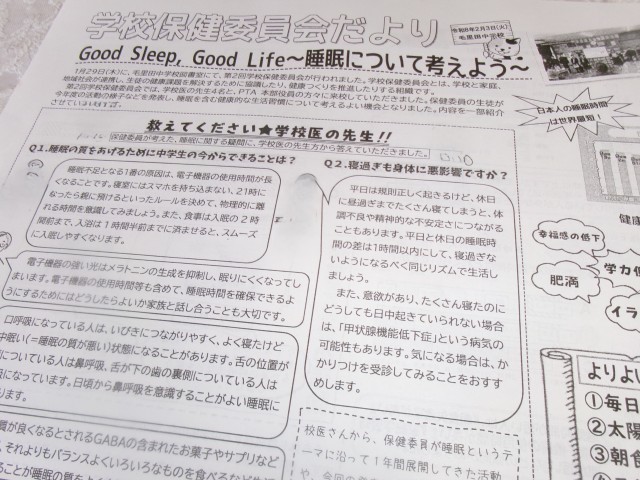 また、「睡眠」について、学校医の先生方からいろいろ教えていただきました。
