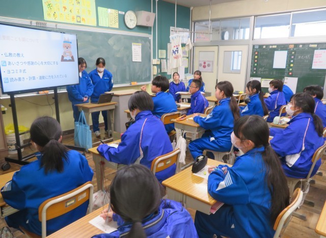 1年生に興味や関心をもってもらえるよう、クイズ形式にしたり、話し方を工夫したりしていました。とても充実した体験をしたことが伝わってきました。さすが、先輩です!! 2年生、成長しています!!!+4