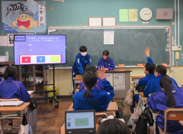 集会後は、教室に戻って担任の先生と一緒に、振り返りをしました。