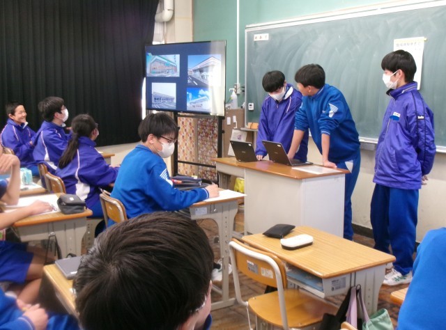 2年生が1年生に向けて、11月に行った職場体験学習の発表を行いました。