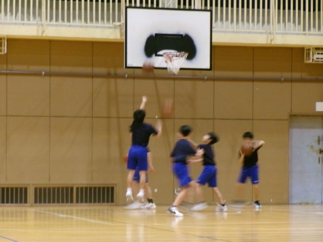 その後、バスケット部とシュート競争、3on3をしました。ケニー選手のプロとしての姿を目の当たりにして、プロ選手がいかに凄いかを実感することができました。