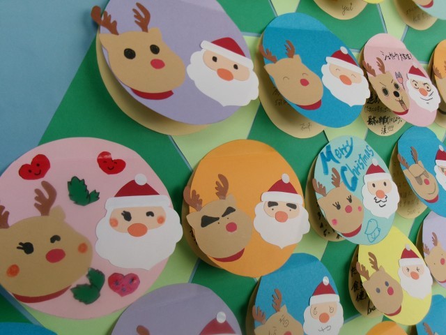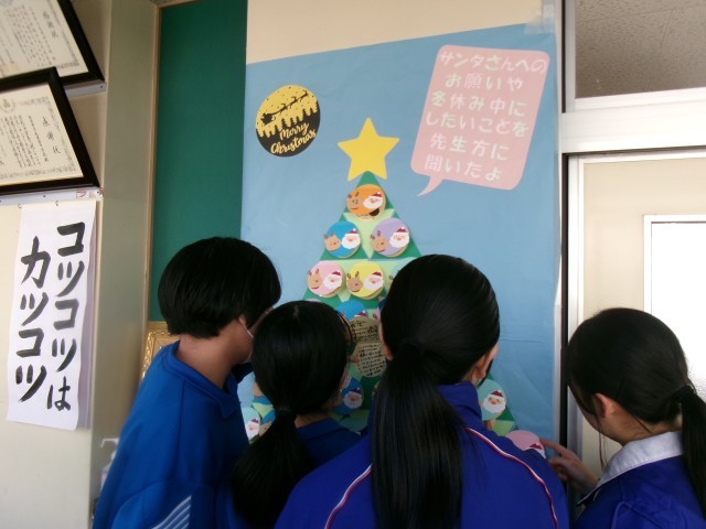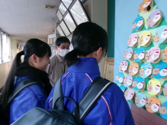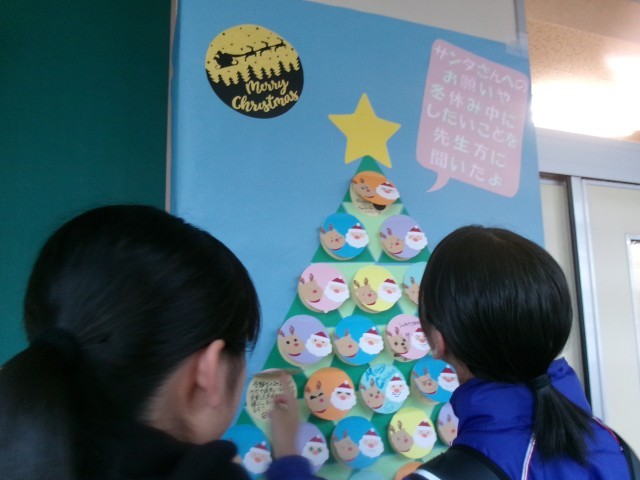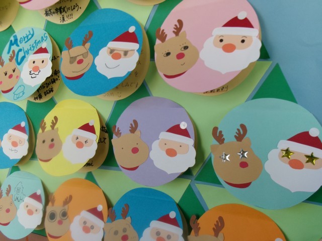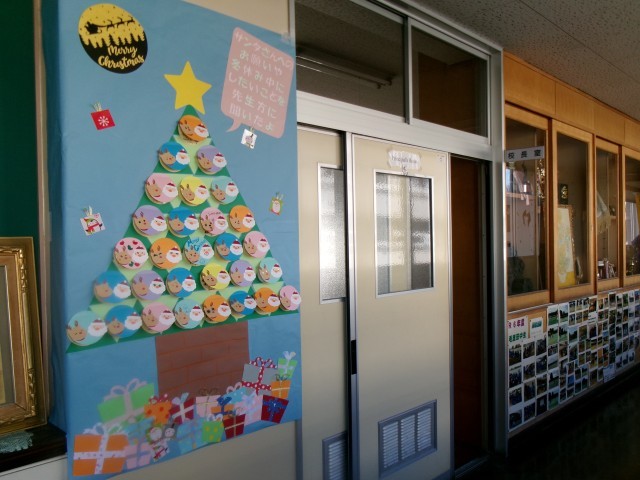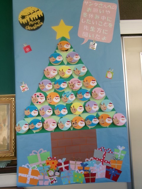 校務員さんが、職員に声をかけ、作ってくれました。サンタのクリスマスツリーです。