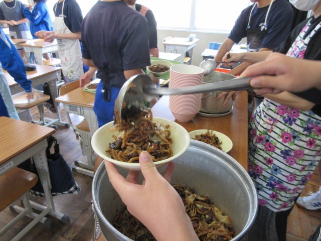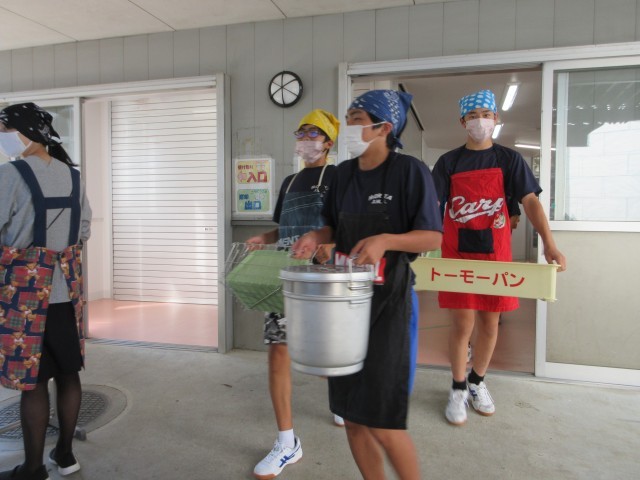 当番は、エプロン、バンダナをつけて、しっかり仕事をしています。ありがとうございます。