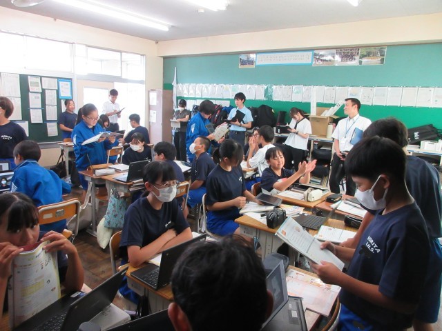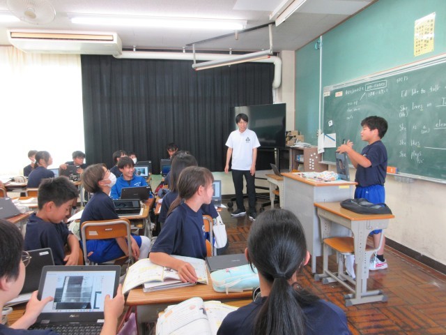 そして、午後は、1年生英語の授業がありました。市内の先生方が見にきてくださりました。緊張していたと思いますが、いつもの調子でがんばっていました。