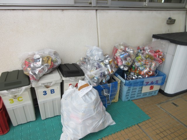 金曜日には、ISO委員さんが、アルミ缶を数え、回収作業をしています。