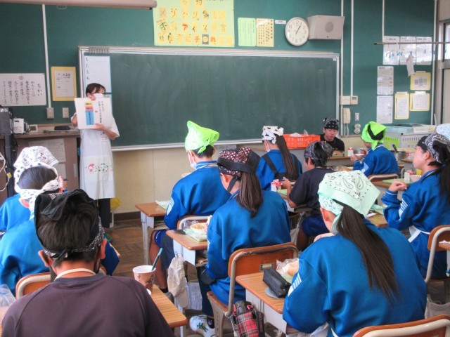 栄養士の先生が「中学生が必要な栄養」について、2年生の教室にきてくださいました。