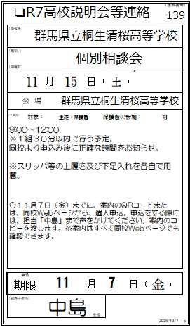群馬県立桐生清桜高等学校(2件)・各種奨学生の案内(2件)・その他の高校の案内です。