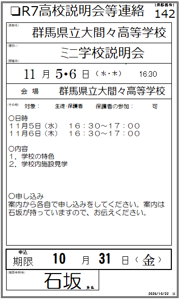 群馬県立前橋西高等学校・群馬県立伊勢崎高等学校・群馬県立大間々高等学校の案内です。