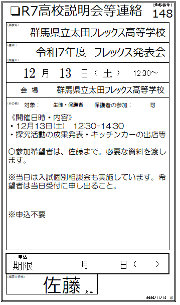 群馬県立太田フレックス高等学校・群馬県立館林女子高等学校・桐生第一高等学校の案内です。