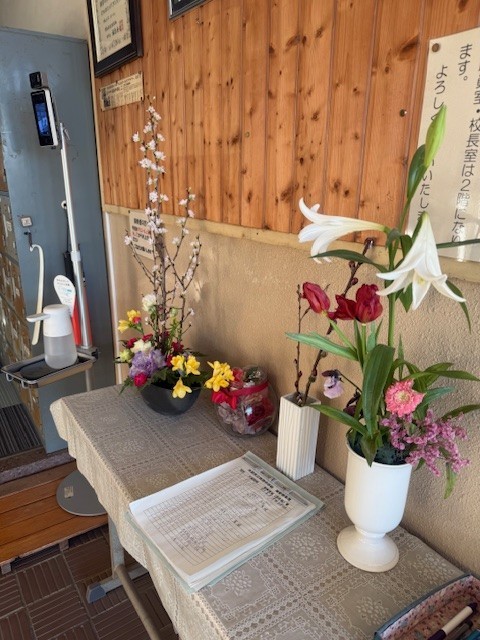 職員が定期的に飾ってくれているきれいなお花が、皆さまをお迎えしますので、是非ご覧になってください。