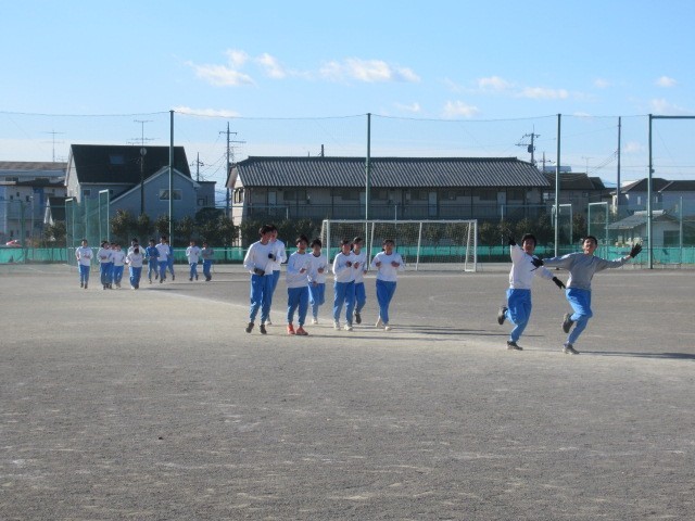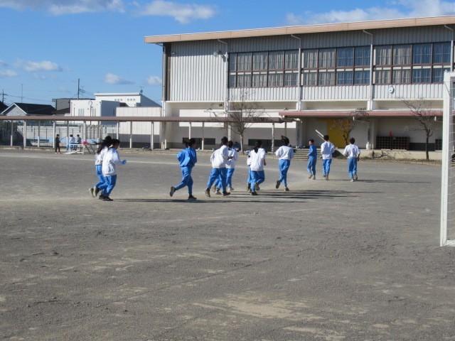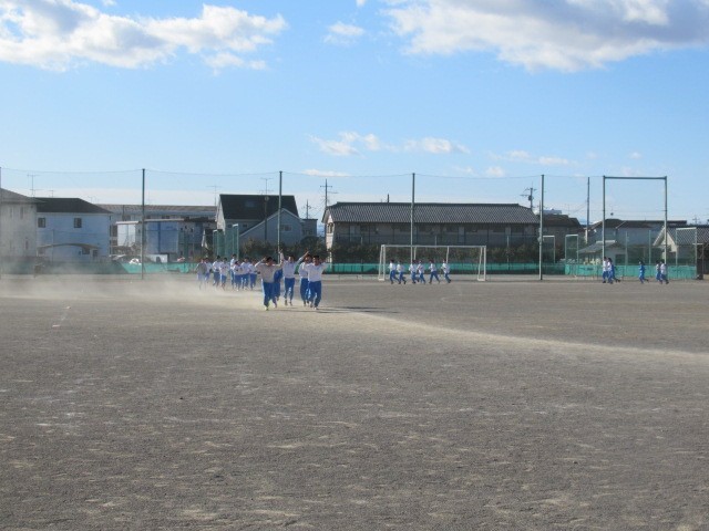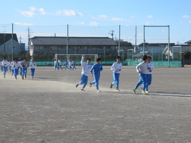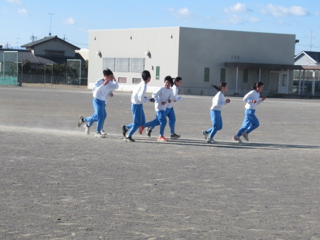 今朝は朝から強風で気温も低いですが、校庭の砂埃に負けず、ペース走に取り組んでいます。