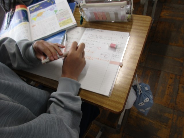黒板に書いていないことでも、大事だなと思ったことはサッとノートに書き留めている人がいました。