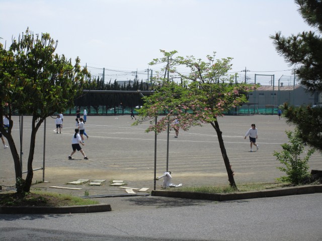 昼休みの校庭は、いろいろなボール遊びをする人たちがいます。