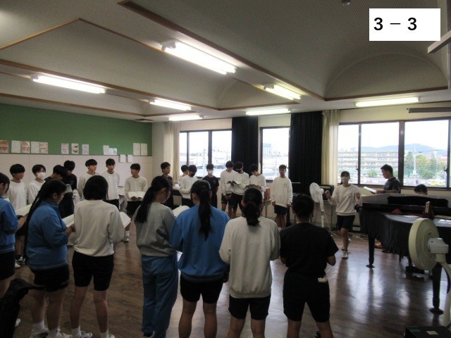 写真は今日の昼休みに音楽室&体育館で練習をした3年生の様子です。