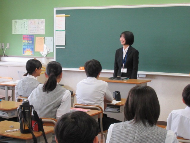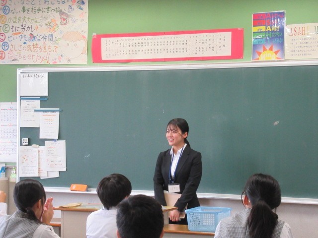 『教育実習でお世話になります。群馬大学で英語を専攻しています。皆さんと関わる時間を大切にしながら、たくさんのことを吸収していきます。よろしくお願いします。』
