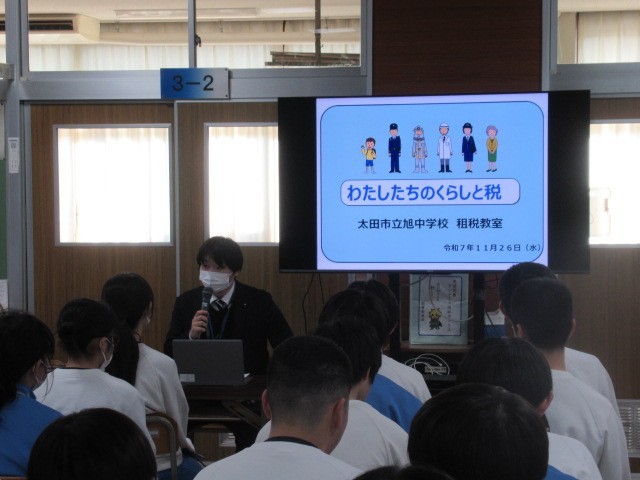 26日(水)の6校時、3年生対象に税の意義と役割を学ぶ「租税教室」が行われました。