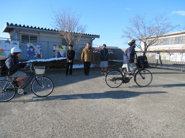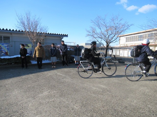 今日は第2月曜日なので、生徒会本部役員が校門であいさつ運動をしています。