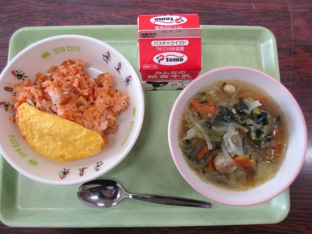 今日の給食はチキンライス 公開日 2026/04/09 更新日 2026/04/09 お知らせ 今日の献立は、チキンライス・オムレツ・ミートボールスープ・牛乳でした。ミートボールスープは、春雨が入っていてラーメンのようでした。チキンライスは酸味がまろやかでおいしかったですね。今日も完食です。ごちそうさまでした!