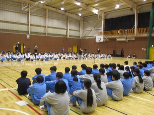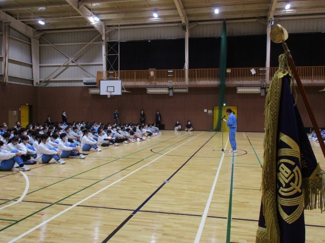 新入生を迎える会 公開日 2026/04/10 更新日 2026/04/10 お知らせ 新入生を迎える会では、クイズやダンスで楽しく盛り上がりました。最後には、硬派な応援団が登場し、応援で皆を元気づけてくれました。旭中の素晴らしいところは、名前を呼ばれた生徒が「はいっ!」としっかり返事をするところです。その姿を見て、すがすがしい気持ちになりました。 +7