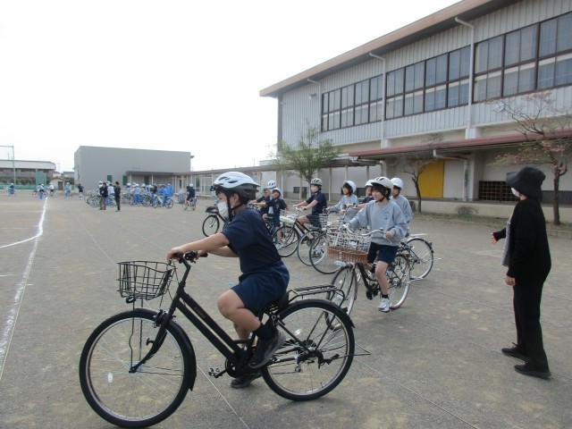 1年生 交通安全技能講習 公開日 2026/04/14 更新日 2026/04/14 お知らせ 1年生は、5校時に交通安全技能講習を行いました。すぐに反応して自転車の方向を変える練習やクラス全員での八の字走行をしました。八の字走行では、声を掛け合って、ぶつからないように走ることができました。毎日乗る自転車です。安全第一で、登下校してください! +5
